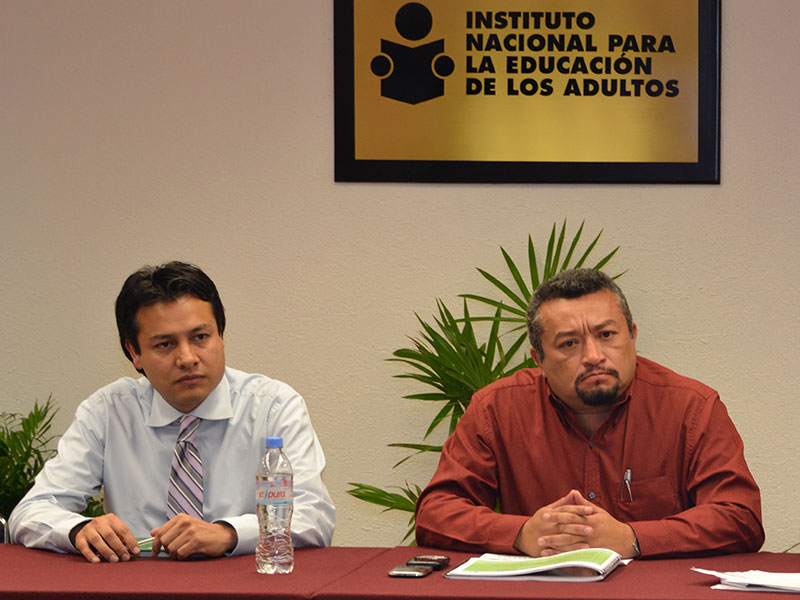 El director de Planeación, Administración y Evaluación, Gerardo Molina y Juan Carlos Cervera Pavía, director general del Instituto de Educación para Adultos del Estado de Yucatán (IEAEY) , durante la Reunión para la Concertación de Presupuesto Ramo XI y Metas 2013, 3 efectuada el pasado jueves 21 en la ciudad de México, donde se analizó el presupuesto del 2013 para el instituto, buscando la optimización de recursos, así como un mayor impulso de los programas, especialmente en las zonas donde se concentran los índices de rezago educativo.