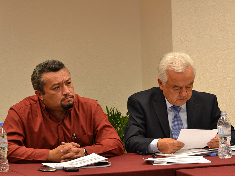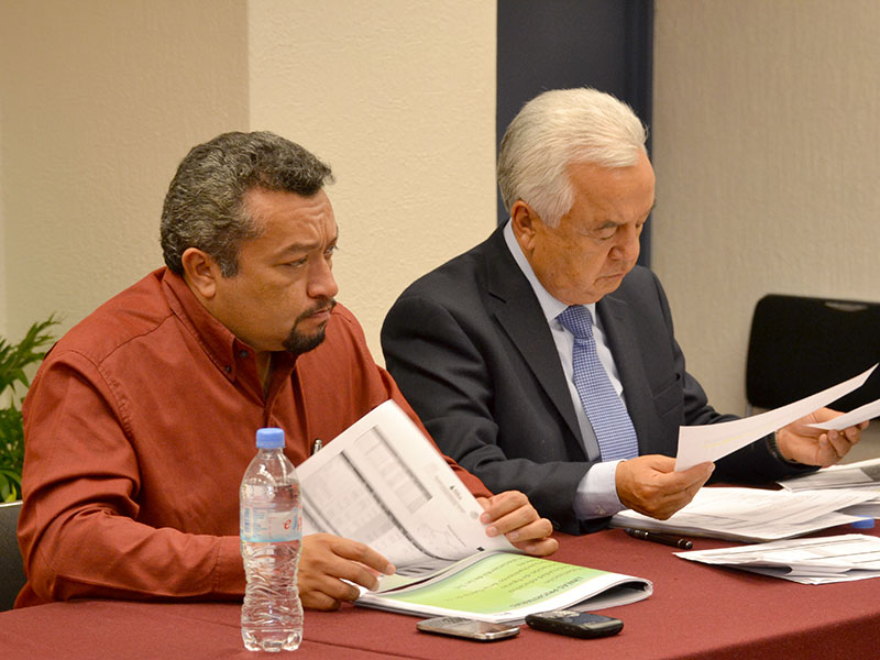 En las fotos: Juan Carlos Cervera Pavía, director general IEAEY, y Miguel Márquez, director de Delegaciones, analizan los puntos presupuestales 2013.