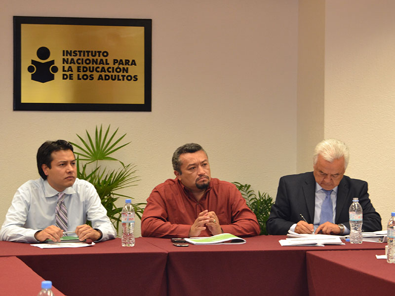 El director general del IEAEY, Juan Carlos Cervera Pavía, analiza con las direcciones de Planeación, Delegaciones y Concertación y Alianzas Estratégicas del INEA, el presupuesto 2013.